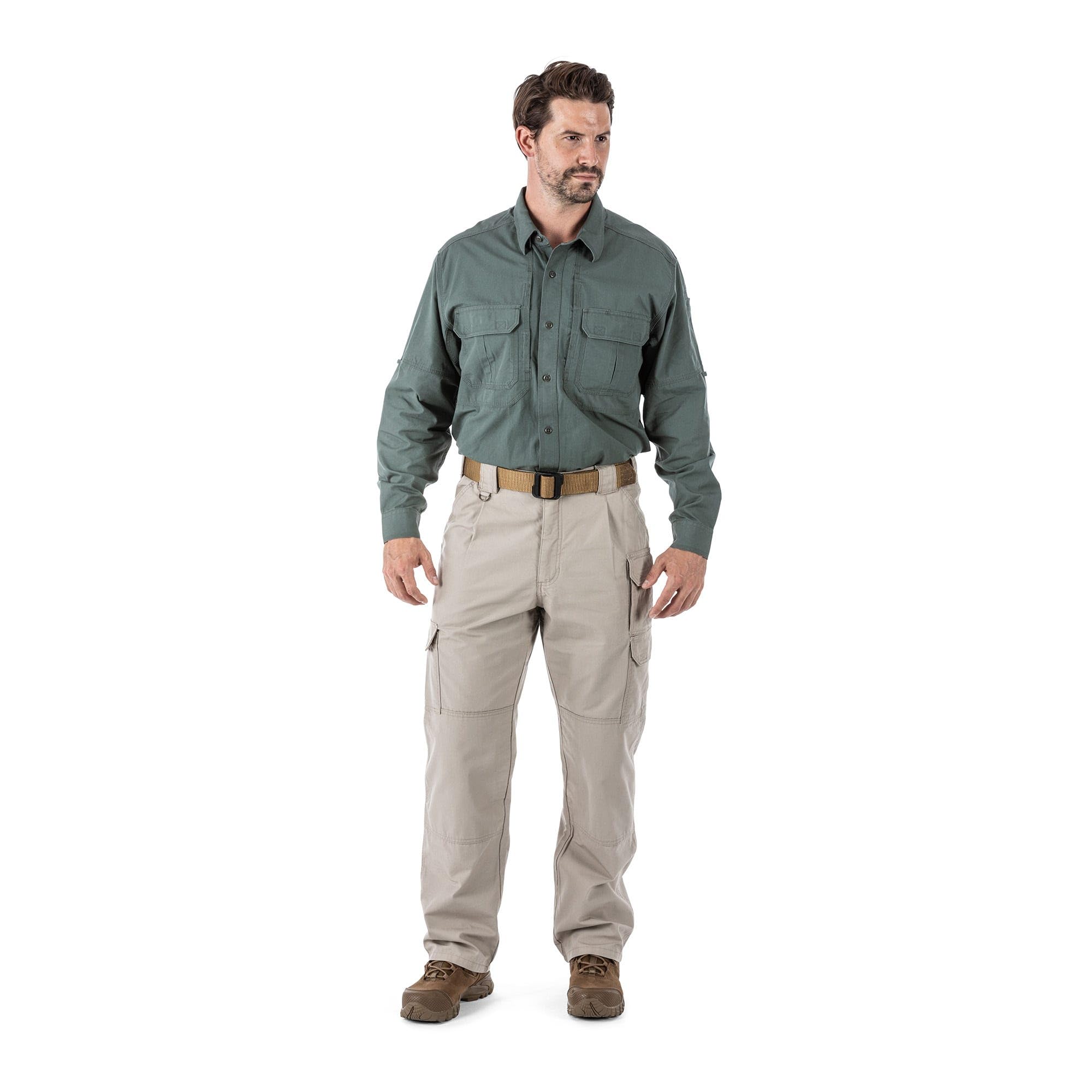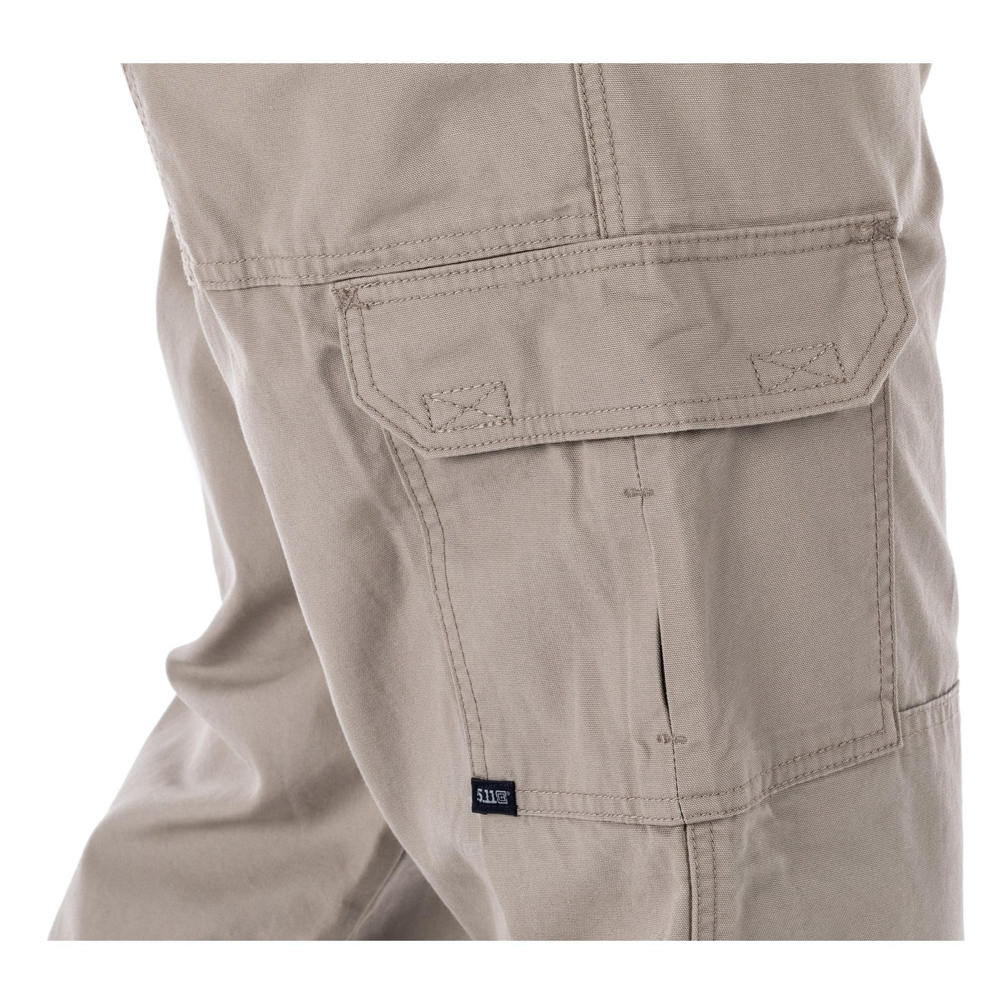 5.11 Tactical Cargo Work Pants in Khaki are made from 100% cotton canvas, offering durability and comfort for demanding work conditions. They include multiple storage options such as trademarked back strap and slash pockets, cargo pockets, and a utility pocket on the left front, providing convenient access to tools and essentials. The adjustable waist and D-ring on the right front belt loop ensure a tailored fit and ease of movement. Reinforced with double seat and knee patch pockets plus nylon at hand and back pockets, these pants are built to last. Their robust design performs well across various weather conditions, ideal for professionals and outdoor enthusiasts.